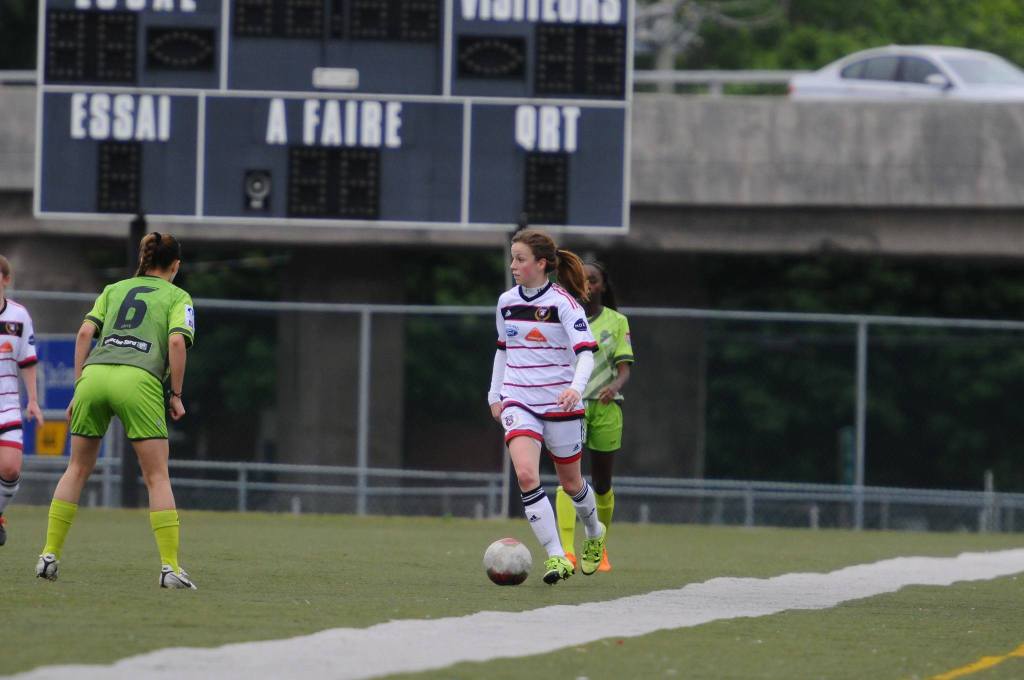 En parallèle de sa carrière collégiale, Mégane évoluait l’été avec un club civil. Avant son entrée au cégep, en 2015, elle a joué sa dernière saison à Saint-Hyacinthe, puis entre ses deux années au cégep Garneau, elle a commencé à évoluer pour le club de Lakeshore situé à Kirkland, dans l’ouest de Montréal. Pour quiconque connaît un peu sa géographie, on imagine très bien les kilomètres s’engranger rapidement au compteur.