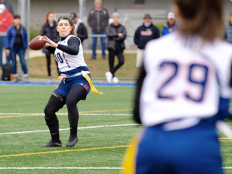 Cependant, les démarches pour faire naître la ligue de flag et le texte publié ont suscité d’importantes réflexions chez les membres du RSEQ. Et c’est suite à de nombreuses discussions que la décision a été prise de prendre en charge la ligue de flag football universitaire féminin. « On est super contents », nous dit d’entrée de jeu Alexandre Desjardins. « C’est ce qu’on voulait depuis le début. Reste à voir ce que ça implique, mais on peut dire qu’on a gagné. »
