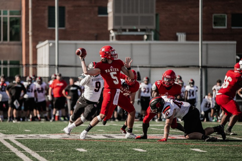 Pour Vanier, la recette est simple. On marque des points à un rythme infernal. Le quart Eloa Latendresse-Régimbald offre un spectacle qui mérite le déplacement. Et il en a fait une démonstration plus qu’éloquente face à Lévis en passant pour 516 verges et un touché en plus de courir pour 56 verges et deux autres touchés. Son groupe de receveurs est impressionnant et diversifié. Six joueurs différents ont capté au moins trois passes. Teree McDonald notamment a cumulé 172 verges en 7 attrapés dans la rencontre.