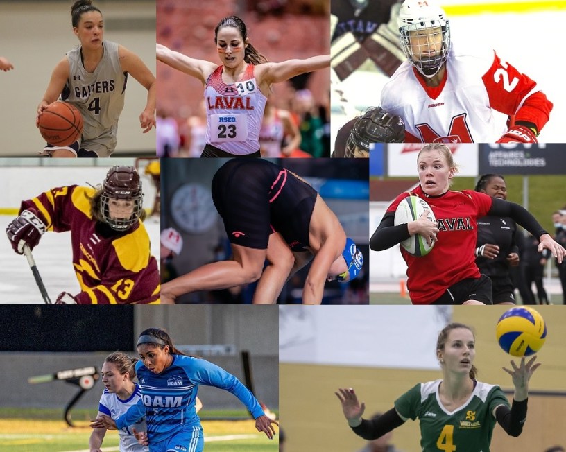 Chaque semaine, je vois à l’oeuvre et je suis les performances d’athlètes comme Jessy Lacourse, Catherine Beauchemin, Audrey Leduc et Maude Léveillé en athlétisme; Amaiquen Siciliano, Fredlyne Verrier, Myriam Leclerc, Kim Letang et Iman Ibrahim en basketball; Jade Downie-Landry, Marika Labrecque, Rosalie Bégin-Cyr, Mahika Sarrazin, Audrey-Anne Veillette, Maude Pépin, Jessica Bélanger en hockey; Daphné Danyluk, Elizabeth Ling, Anais Arlandis et Axelle Cara en natation; Mégane Sauvé, Arielle Roy-Petitclerc, Karima Lemire, Marilou Dugrenier, Meïla Guipro-Lebel en soccer; Sabrina Mayer, Gabrielle Archambault, Emma Bergeron, Maude Fréchette, Béatrice Lamarche, Olympe Desmedt, Victoria Iannotti, Charlène Robitaille, Alissa Veilleux en volley. Et je pourrais continuer longtemps en ajoutant les joueuses de rugby, de flag-football, de golf en plus de toutes celles qui évoluent au niveau collégial.