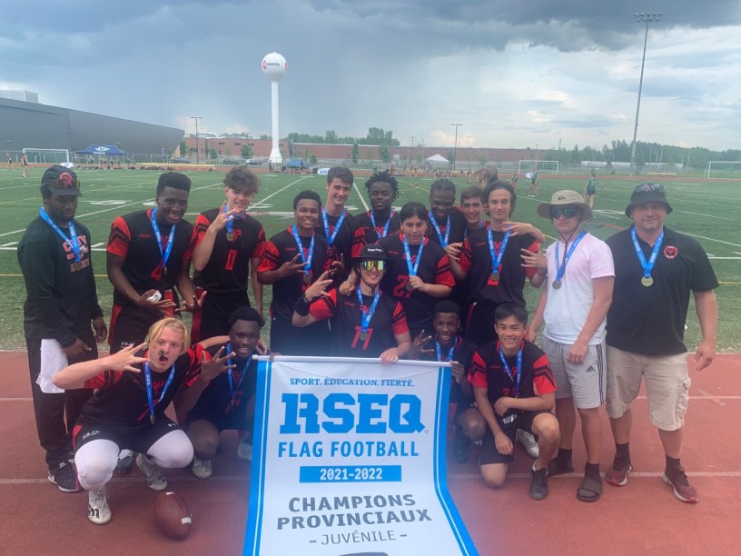 Drummondville était l’hôte des championnats provinciaux scolaires de flag football la fin de semaine dernière. De partout à travers le Québec, les meilleures équipes féminines et masculines de niveaux benjamin, cadet et juvénile se sont rassemblées pour une dernière compétition avant les examens de fin d’année. Pour des raisons familiales, j’ai suivi de près le parcours d’une équipe en particulier, les Dragons du Collège St-Jean-Vianney en juvénile masculin.