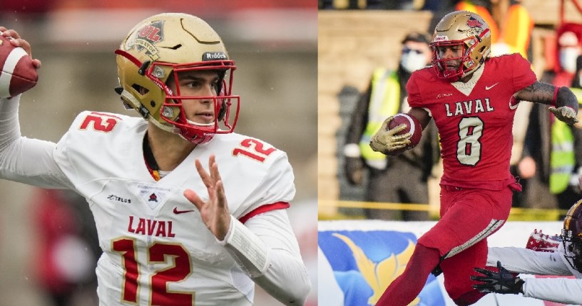 Cette fin de semaine aura donné des arguments à ceux qui mettent en doute l’idée d’une parité dans le football québécois. Des victoires de 29-12 des Carabins et de 60-14 du Rouge et Or ne font rien pour convaincre du contraire. Par contre, on a aussi l’occasion de voir à l’oeuvre un duo de joueurs qui est en voie de réécrire le livre des records offensifs du RSEQ. Le quart Arnaud Desjardins et le receveur Kevin Mital du Rouge et Or de l’Université Laval sont actuellement dans une classe à part.