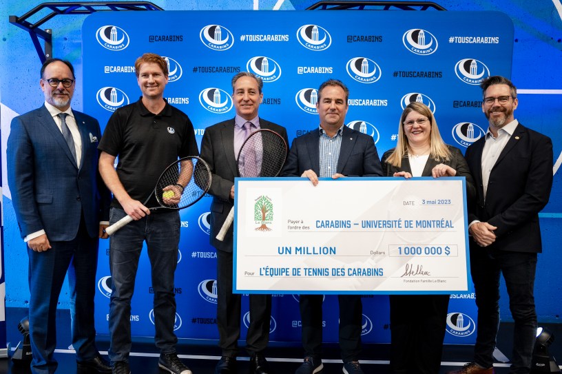 Devant une salle bien remplie au CEPSUM, l’organisation des Carabins de l’Université de Montréal a procédé ce mercredi à l’annonce d’un don d’un million de dollars pour son programme de tennis. La somme provient de la famille LeBlanc et a déjà permis l’embauche de son tout premier entraîneur à temps plein.