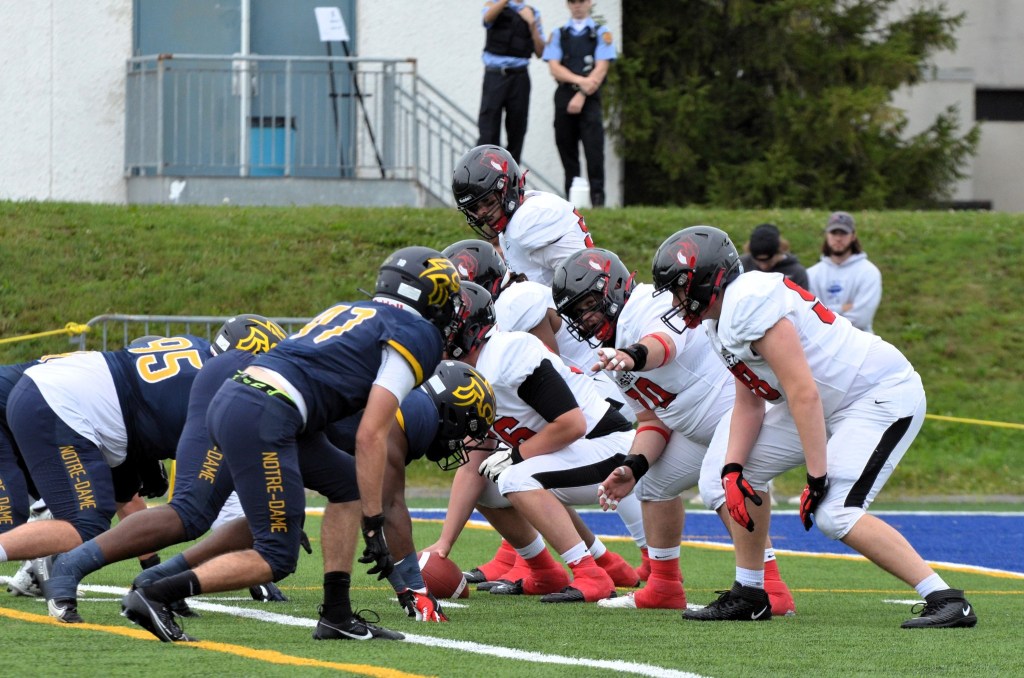D’ailleurs, cette dernière n’a pas mis de temps à se faire valoir. Dès le premier jeu offensif du Notre-Dame, Benjamin Blaise a récupéré un ballon échappé par Rémi Nadeau. Gonzalez a repéré Maxence Frenière pour 25 verges à la porte des buts avant de trouver Charles Williams deux jeux plus tard dans la zone des buts. À la moitié du premier quart, le pointage était déjà de 9-7.