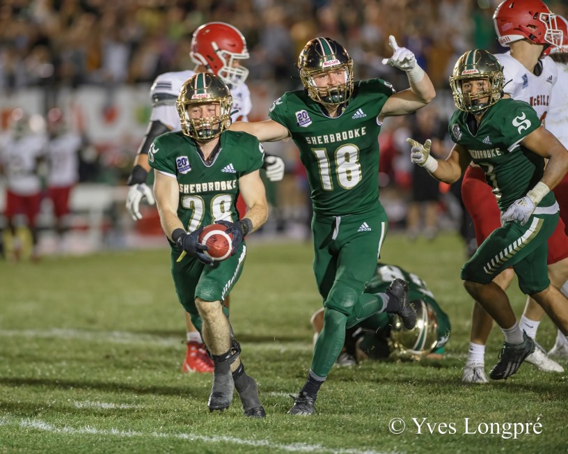3- Marc-André Shaw a connu son meilleur match au niveau universitaire avec 138 verges de gain sur six réceptions. L’ancien porte-couleurs des Géants de St-Jean a capté deux passes de 16 et 37 verges pour mener les siens à la porte des buts immédiatement après le touché au sol de 63 verges d’Éloa Latendresse-Régimbald. Une séquence clé pour le Vert & Or.