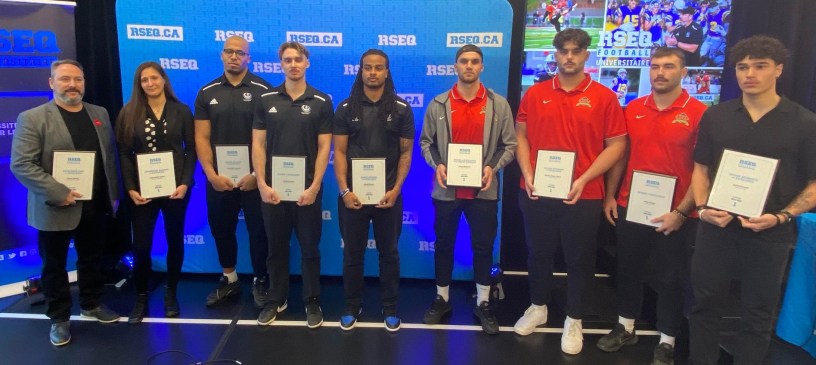 Un vendredi midi très agréable entre les murs du CEPSUM où était réunie la crème du football universitaire québécois. Comme le veut la tradition, on a profité d’un dernier moment, 24 heures avant les hostilités, pour couronner les plus méritants lors d’une cérémonie animée par Charles-Antoine Sinotte. On en a aussi profité pour jaser un peu.