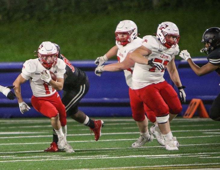 Début du 4e quart, Lévis a bloqué un dégagement et recouvré le ballon. S’en est suivi un placement de 17 verges de Vincent Bergeron. Puis, on a complété le pointage avec un tour du chapeau d’Hugo Boucher qui a capté une autre passe, cette fois d’Édouard Poulin pour un majeur de 65 verges.