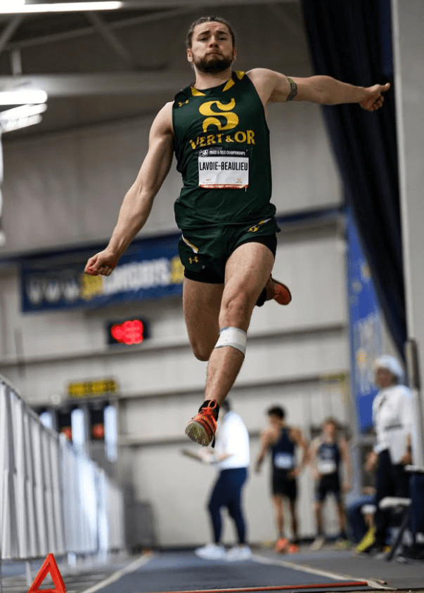 Evann Mangue des Carabins de l’Université de Montréal a pris la troisième place au saut à la perche. Sa coéquipière Laurie Boisvert a quant à elle terminé 4e au saut en hauteur.