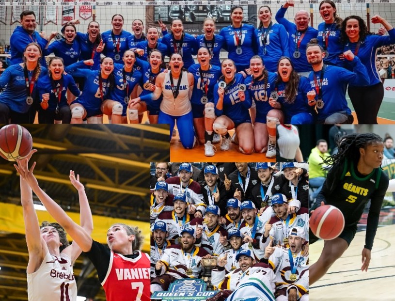 Cette fin de semaine, nous avions quatre championnats canadiens de basket, un championnat canadien de volleyball et un championnat de hockey ontarien impliquant une équipe de Montréal. Résultat des courses pour les neuf équipes québécoises : Un titre, une médaille d’argent et deux de bronze.