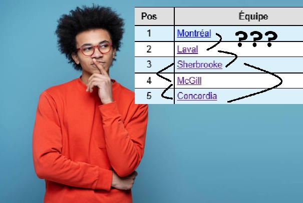 La vraie bataille se passe au niveau des positions 3, 4 et 5. Sherbrooke, McGill et Concordia.